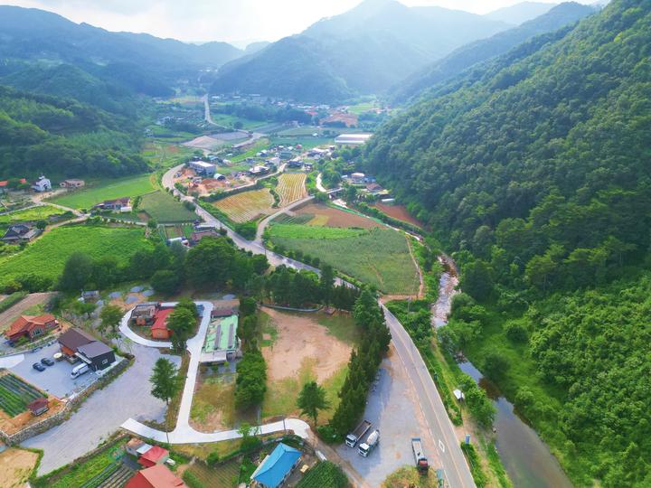 산과 계곡으로 둘러쌓인 글램핑, 카라반, 오토캠핑장이 준비되어 있습니다